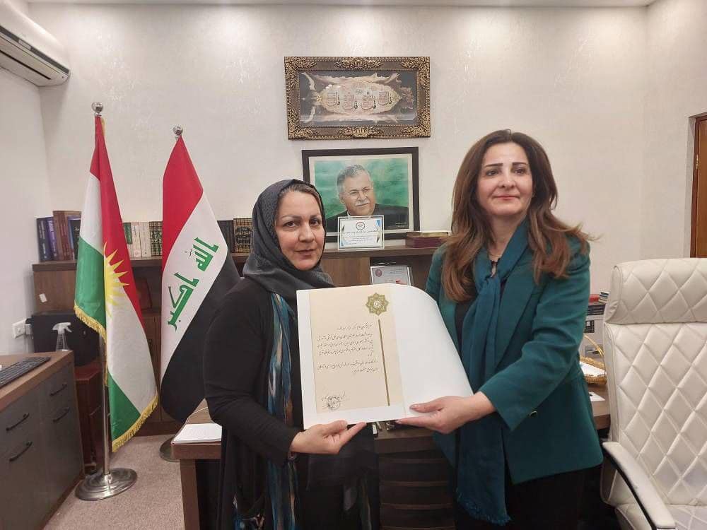 بەئامانجی پەرەپێدانی پەیوەندییەکانی کتێبخانەى ئەوقافی پارێزگاى سلێمانی لەگەڵ دەزگا و دامەزراوەکانی پەیوەندیدار لەئێران، ئەمڕۆ وەفدێک کەپێکهاتبوون لەنوێنەرى مامۆستایانی زانکۆکانی کۆمارى ئیسلامی ئێران و حەسەن پور بەڕێوەبەری سەنتەری رۆشنبیری لەکونسوڵگەری کۆماری ئیسلامی ئێران لەشارى سلێمانی، سەردانی بەرێوەبەرایەتیان کرد و لەلایەن کەوسەر محەمەد بەرێوەبەری کتێبخانەى ئەوقافی سلێمانیەوە پێشوازیکران. لەو سەردانەدا وەفدی میوان ئاشناکران بە پوختەیەک لەبارەی تایبەتمەندییەکانی کتێبخانە و سەرچاوە و کتێبە پڕ بەها و بەنرخە دێرینەکان کەکتێبخانەکەى کردۆتە گەنجینەیەکی گرنگ بۆ سلێمانی. وەفدی نوێنەرانی مامۆستایانی زانکۆکانى ئێران رێزلێنانی خۆیان بەخشیە خاتوو کەوسەر محەمەد لەپاى هەوڵەکانی بۆ هەماهەنگی لەگەڵ ناوەندە ئەکادیمیەکانی ئەو وڵاتە کەگرنگی دەدەنە پاراستنی کلتور و فەرهەنگ و رۆشنبیری و مێژووى مرۆڤایەتی.