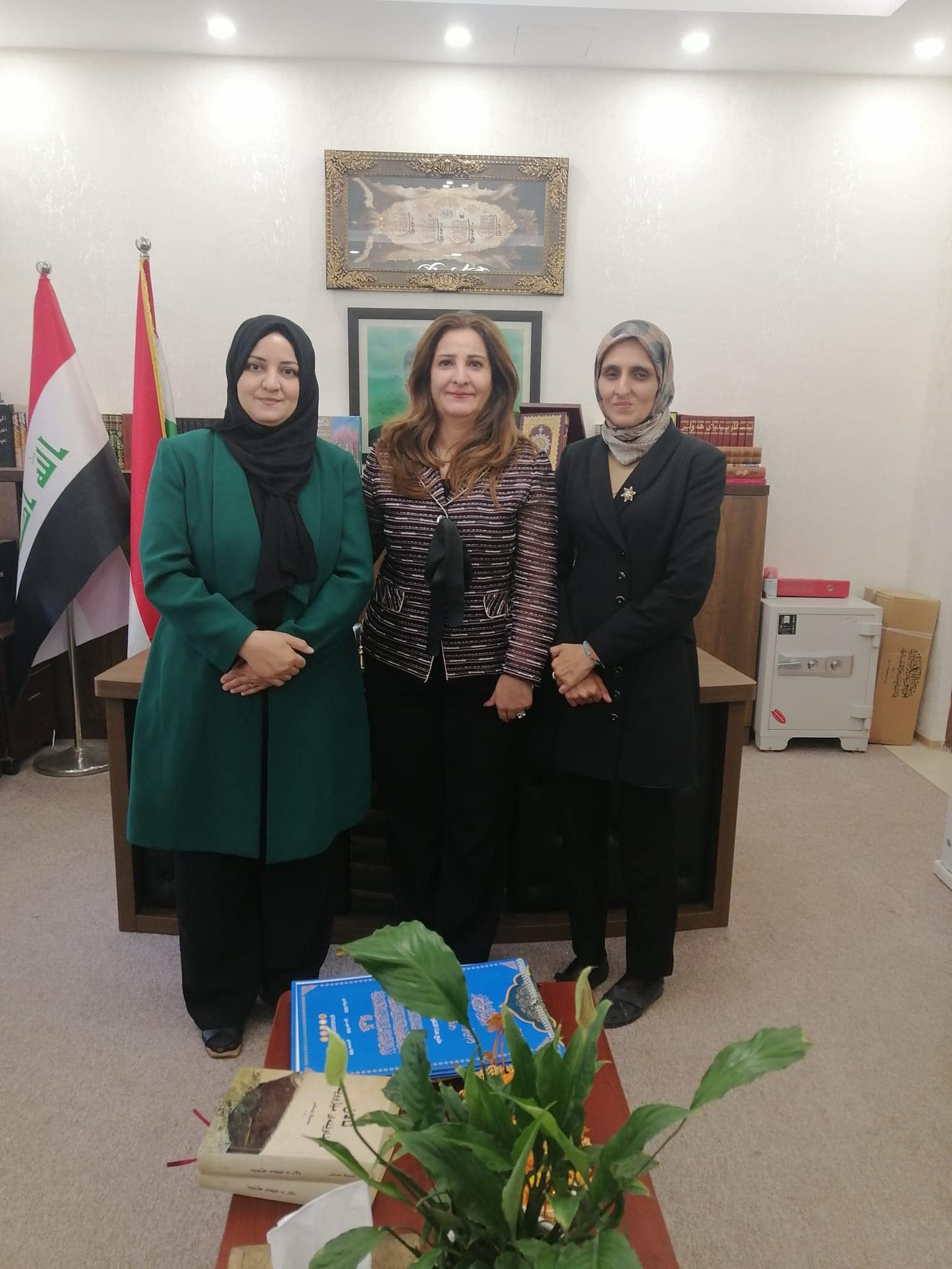 کەوسەر محەمەد بەڕێوەبەری کتێبخانەی ئەوقافی سلێمانی پێشوازیکرد لە خاتوو هودا محەمەد مەهدی سەرپەرشتیاری لیژنەی ناوەندی ژنان لەئەنجومەنی رۆشنبیری کەسنەزانی و خاتوو نور هودا ئەندامی لیژنەکە، کەبەمەبەستی پێشکەشکردنی رۆژژمێری محەمەدی وەک دیاری سەماحەتی سەید شێخ شەمسەدین محەمەد نەهرۆ کەسنەزانی سەردانیان کردبوو. خاتوو کەوسەر سوپاسی وەفدی میوانی کرد بۆ سەردانەکەیان و ئەو دیارییە بەنرخە. هەردولا هاوڕابوون لەسەر گرنگی پەیوەندی هاوبەش و کاری پێکەوەیی لەپێناو خزمەتی کۆمەڵگەو شاری سلێمانی لەرووی کۆمەڵایەتی و رۆشنبیرییەوە.
