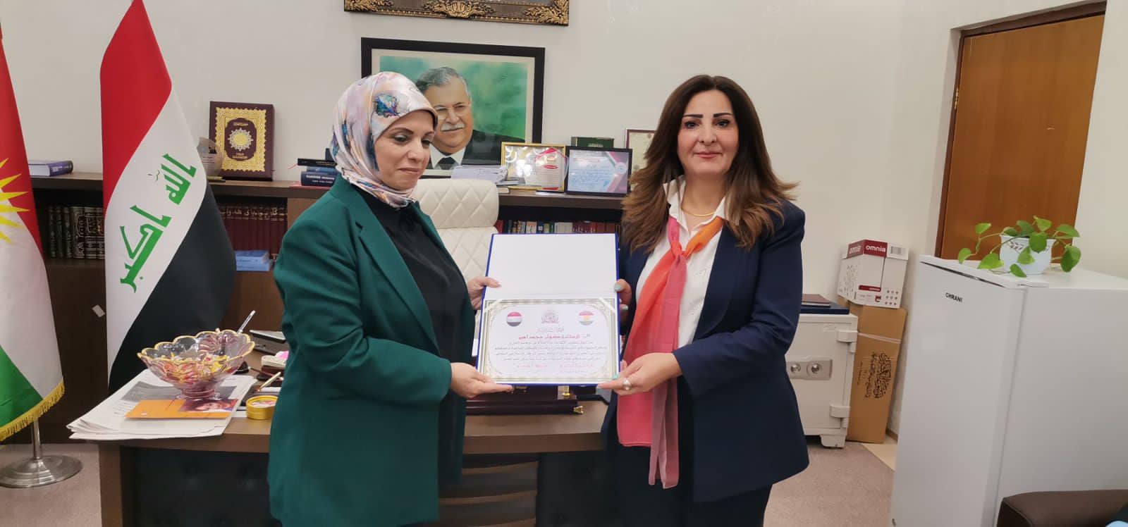 لەپای هەوڵەکانی بۆ بەرەوپێشبردنی رۆشنبیری و راگەیاندن لە وڵات دا و هەوڵە پربایەخ و بەشدارییەکانی، ناوەندی راگەیاندن و رۆشنبیری عێراقی بڕوانامەی سوپاس و پێزانینی بەخشییە خاتوو کەوسەر محەمەد ئەمین بەڕێوەبەری کتێبخانەی ئەوقافی سلێمانی. ئەو بڕوانامەیەش لەلایەن وەفدێکی ناوەندی راگەیاندن و رۆشنبیری عێراقی لقی سلێمانی بەسەرۆکایەتی ماجد سەعید بەرێوەبەری گشتی ناوەندەکە و موئەیەد شێخلی بەرێوەبەری راگەیاندنی ناوەندەکە و خەمیس حەیانی راوێژکاری رۆشنبیری و سائیرە ئەکرەم بەرێوەبەری گشتی ناوەندەکە لە سلێمانی و ئاشی سەلاحەدین بەرێوەبەری کارگێڕی لقی سلێمانی و مامۆستا مەهدی رێکخەری گشتیەوە بەخشرا بە خاتوو کەوسەر.